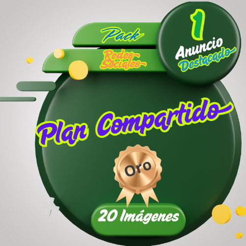 El Plan Oro Compartido  permite la Publicación de 1 Anuncio Destacado ,20 imágenes , 1 video de 1 min publicado en nuestras Redes Sociales , 30 días de Publicación.